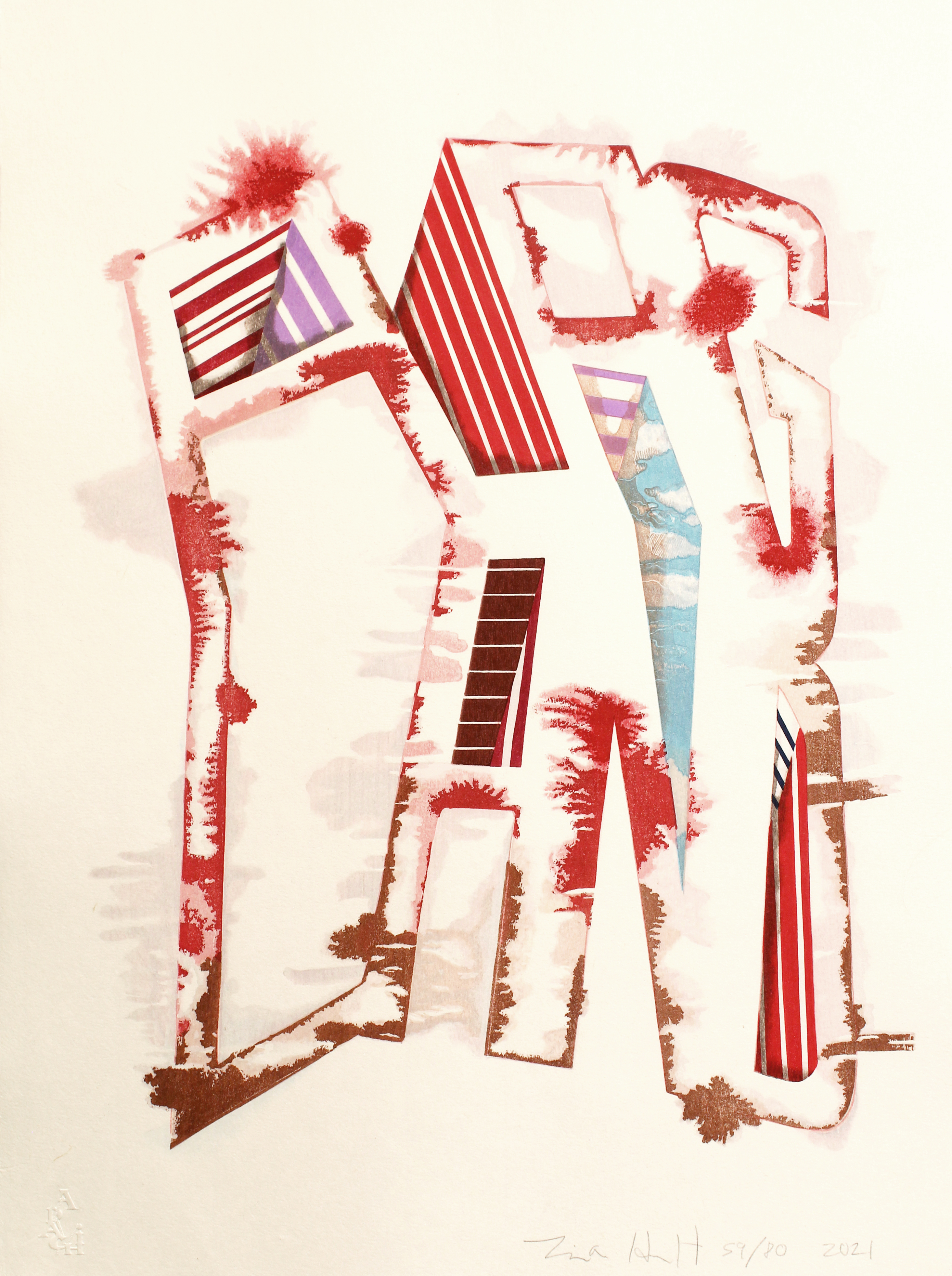 20x20", Watercolor Monoprint